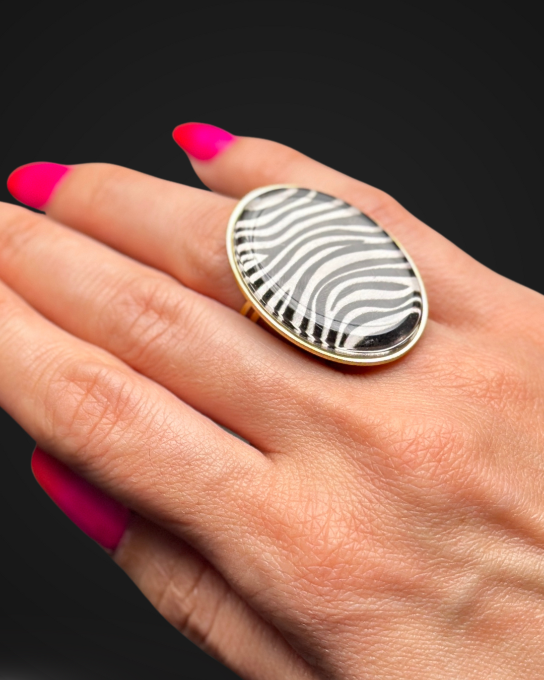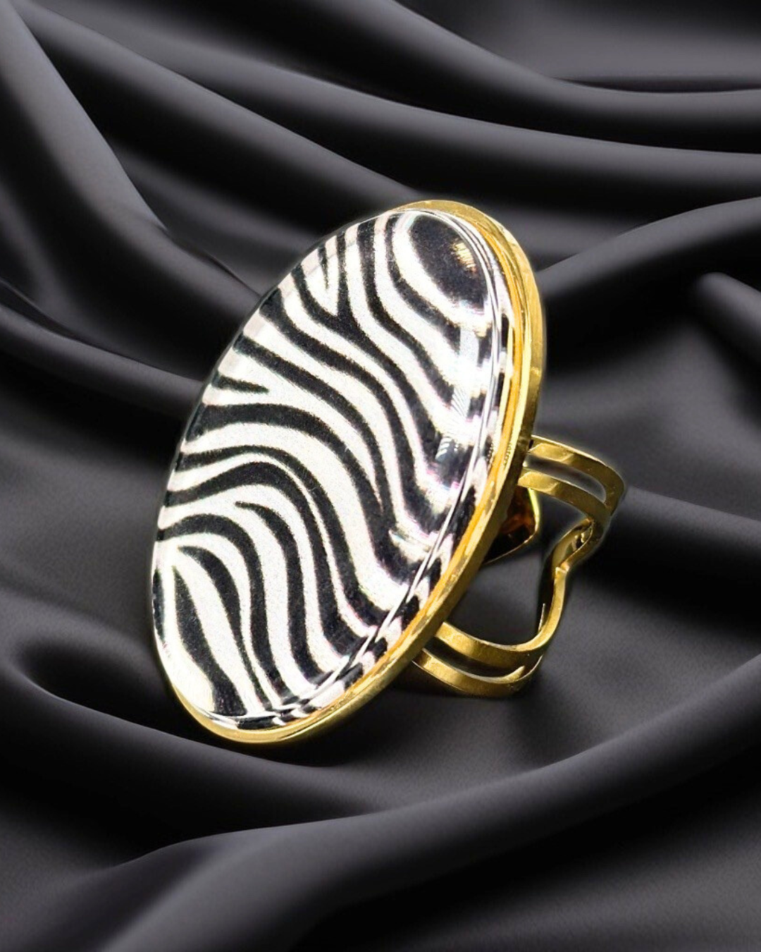 Δαχτυλίδι Γεωμετρικό Ανοιχτό Με Σχέδιο Ζέβρα