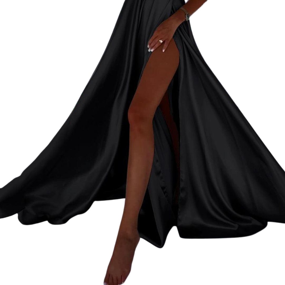 Μάξι φόρεμα τιραντέ σατινέ με σκίσιμο στη μια πλευρά οι τιράντες δένονται και πίσω στην πλάτη έχει λάστιχο σφιγγοφωλιά.