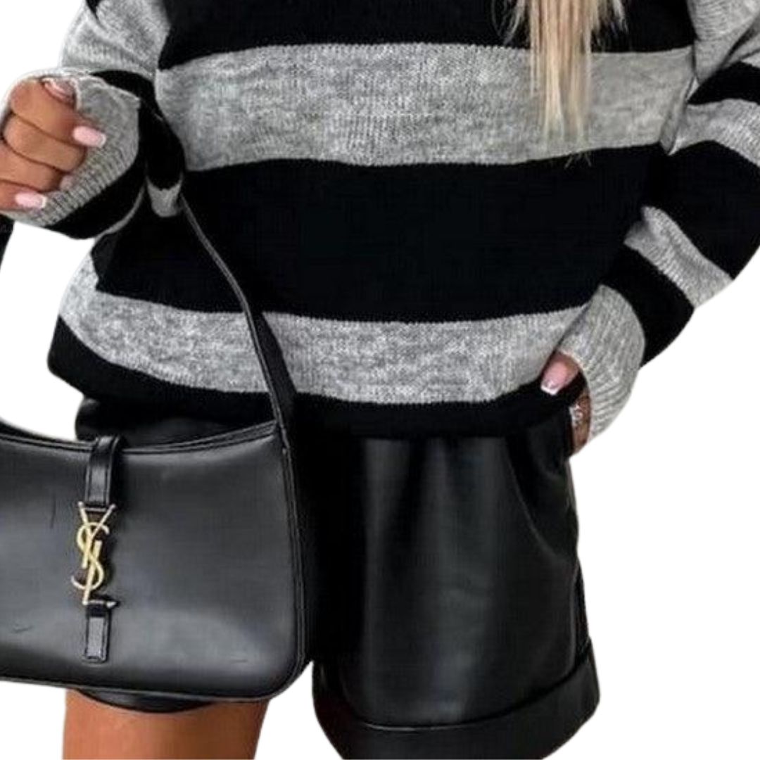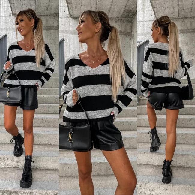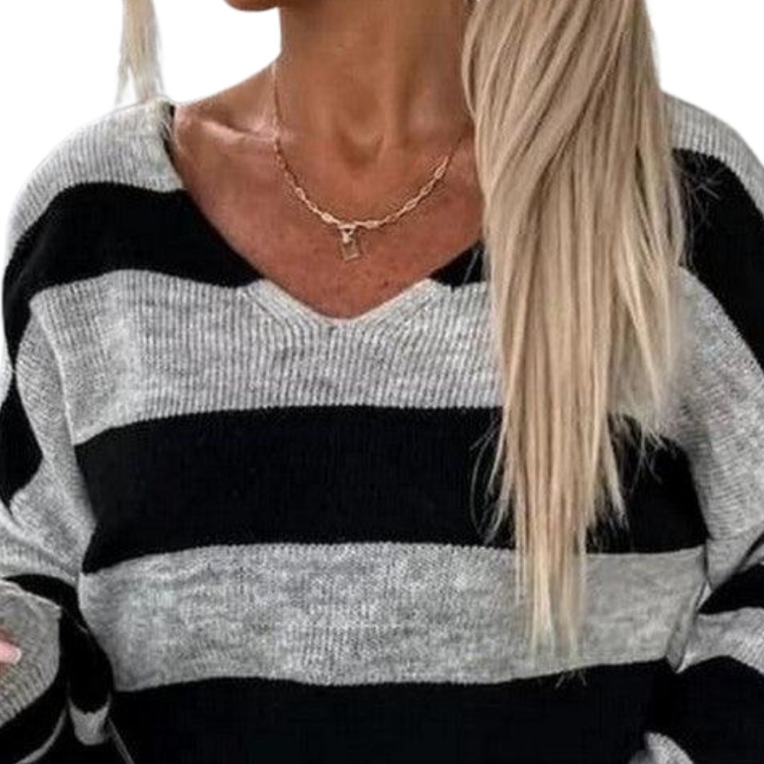 Μπλούζα Πλεκτή Ριγέ με V Λαιμόκοψη