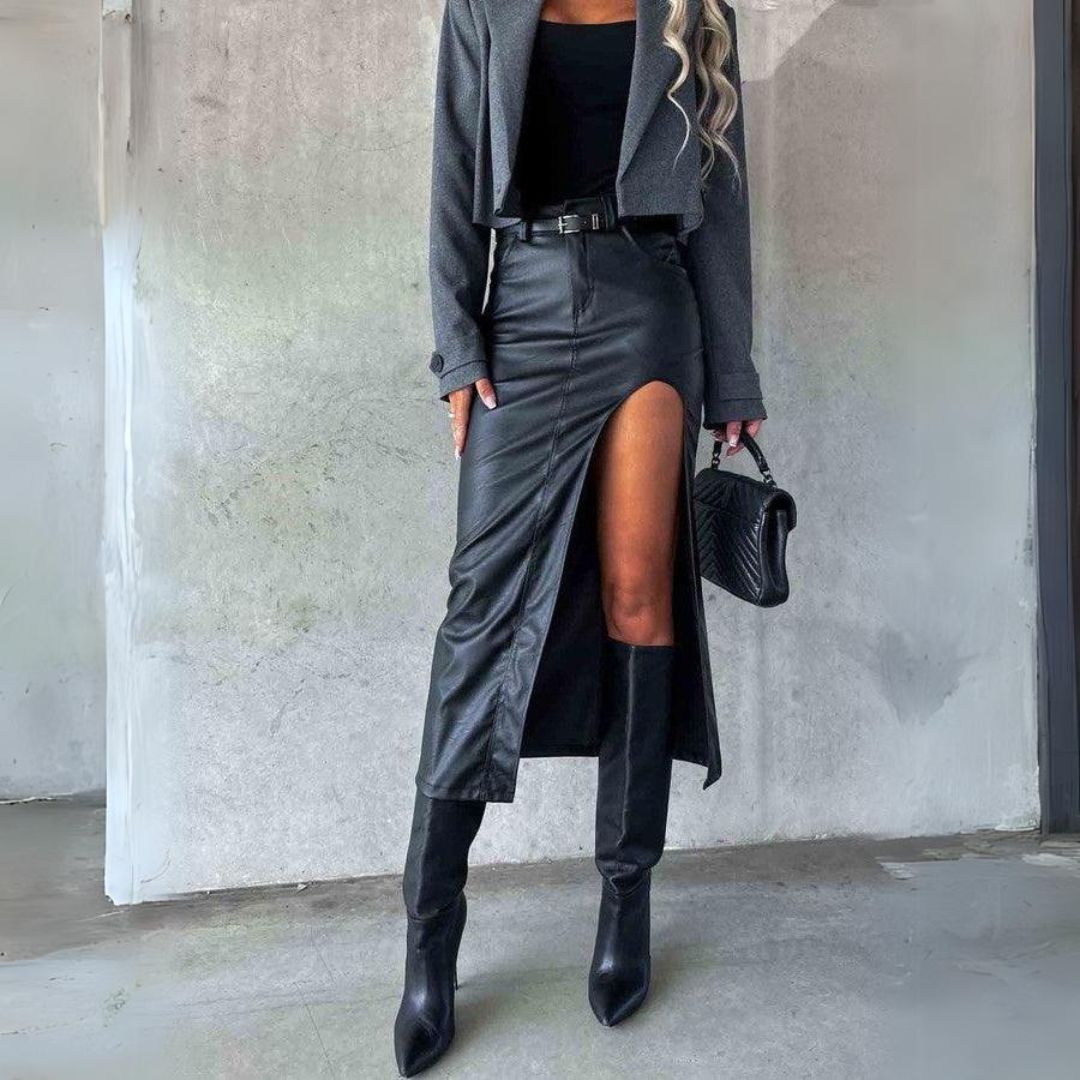 Μίντι Φούστα Δερματίνη με Ζώνη